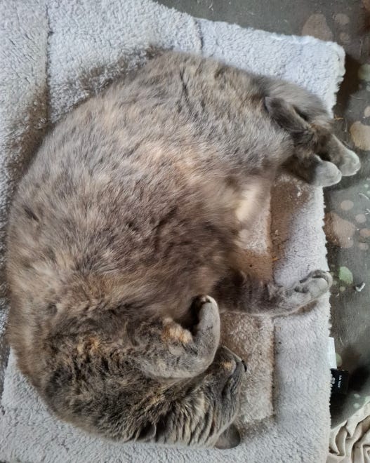 In the recording, my kitty, Sooty, stretched and chirped in her sleep just after I read the repeat of the line “There’s a way of doing.” She’s always a noisy sleeper. She’s so soft and plushy. (She’s my little “COVID baby.” I adopted her in December 2020. A friend of mine had a mama cat arrive on her doorstep, and she immediately gave birth to kittens on October 1, 2020. I watched her grow up on Facebook. She had brightly colored calico and ginger siblings, who were getting a lot of attention from potential adopters. This little dust ball held my heart in her paws! I do love gray kitties; they are special. Being a diluted tortie, even better. She is the best kitty; she’s never known trauma, hunger, or suffering of any kind. She’s such a happy girl!