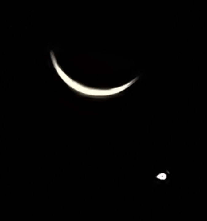 We saw the crescent Moon and Venus with Regulus in a little line up early this morning, but my Fred’s phone camera didn’t capture the little blue star.
