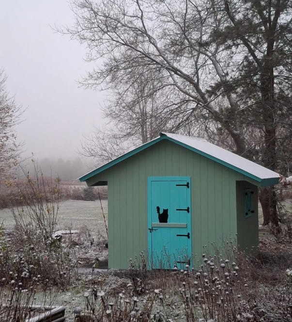 Hi Laura - winter approacheth the Great Lakes... Elizabeth looks prepared and your writing shed ready to face the worst...