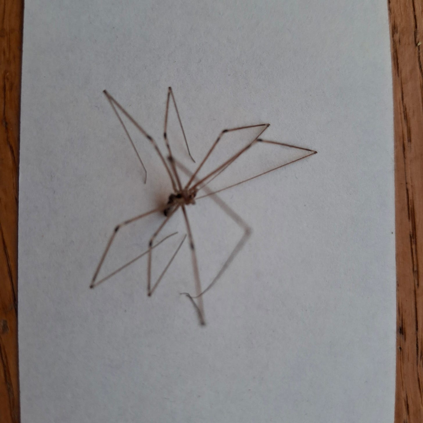 It was our resident bathroom spider (I know it’s not an official spider). Lately, it has been fished out of our bathtub several times in the last couple of weeks. It was still moving when I picked it out of the soap bubble mound it was perched on, and I put it on a piece of paper towel to dry off, only to find it dead in the morning. I felt bad.