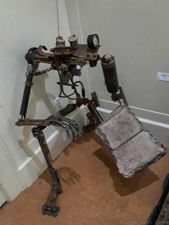I loved that my Fred and I worked on this project together—it was our last time exhibiting before I retired in 2022 (and before COVID nixed everything for a couple of years.) Even though they are individual artworks that can stand on their own, having his robot holding my book was special.